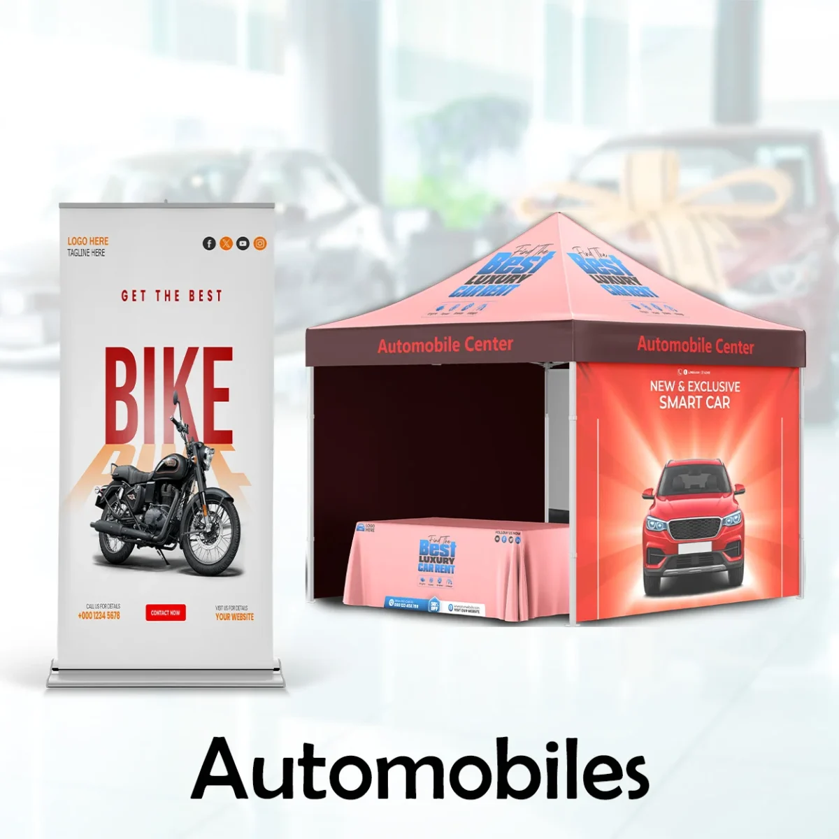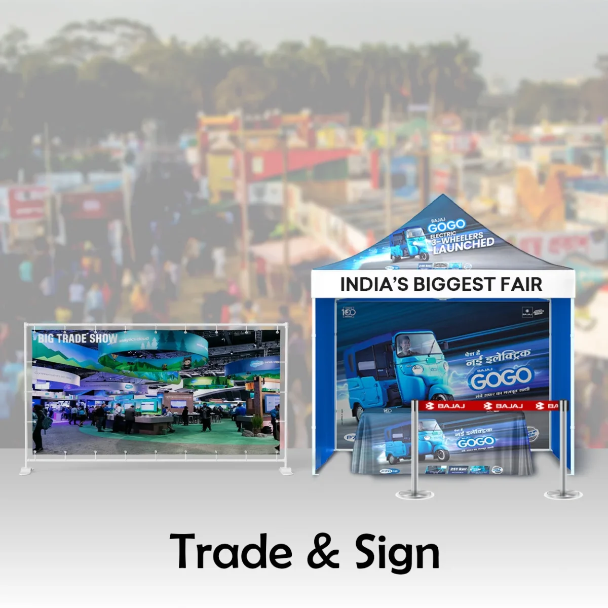 For trade shows, roll-up standees, adjustable backdrops, banners, and promotional flags are ideal. These displays quickly grab attention, clearly convey your message, and create a professional presence that attracts visitors to your booth.