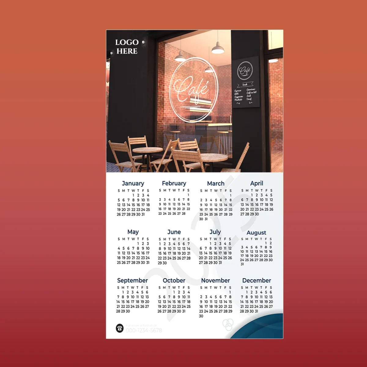 Keep your brand on tables or walls year-round. Printed with high clarity and available in desk or wall formats, restaurant calendars serve both as utility and subtle branding.
