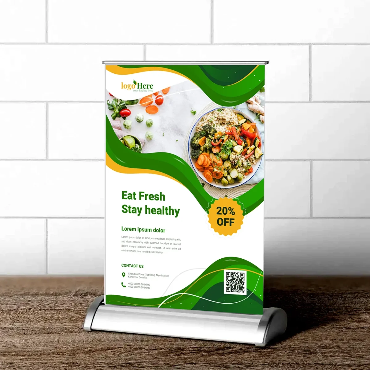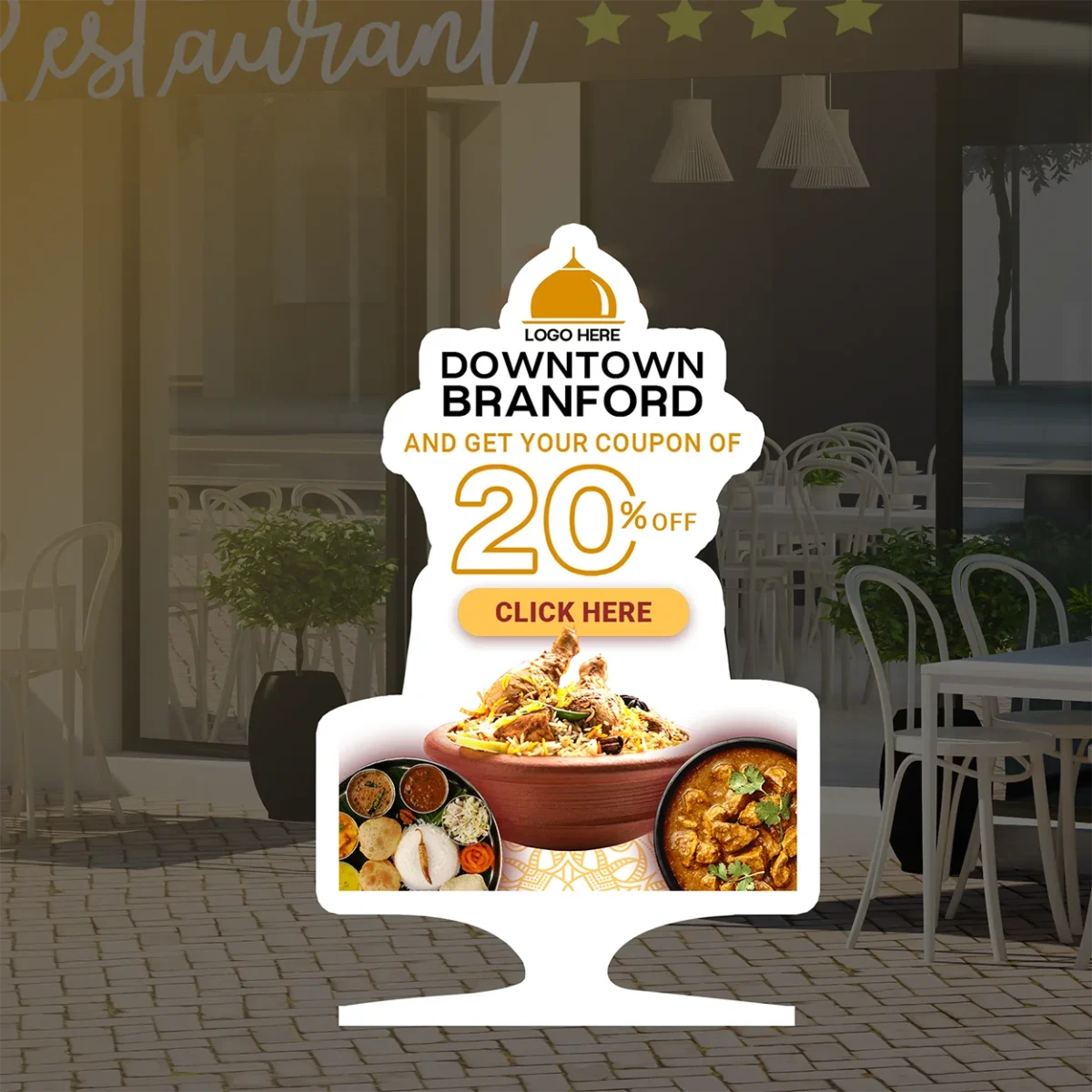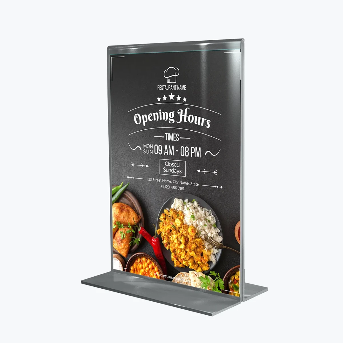 Indoor visuals matter too. These signs and standees direct, inform, and elevate brand appeal inside your space—from tabletop QR holders to restroom signs.