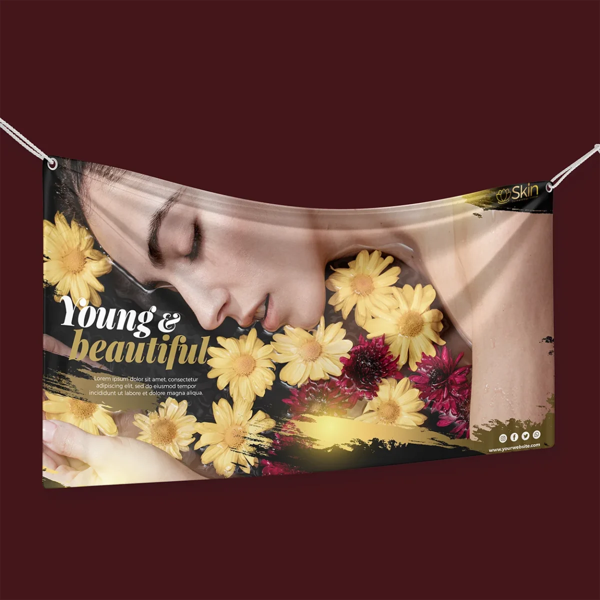 Large-format banners for seasonal offers, new treatments, or brand promotions. Ideal for storefronts, malls, or events.